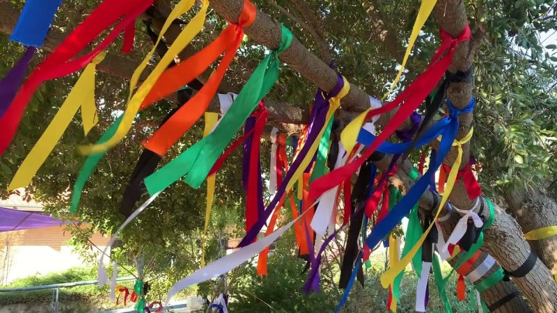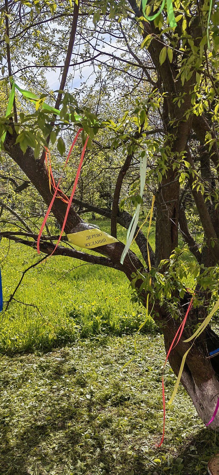 Дети и родители обдумывали семейное желание и привязывали ленточки.