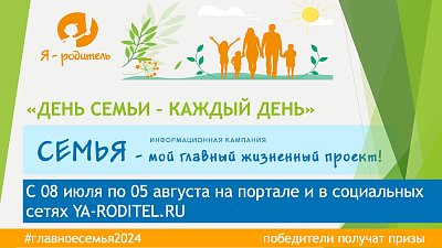 Фонд поддержки детей, находящихся в трудной жизненной ситуации, в 2024 году в рамках Плана мероприятий Года семьи реализует информационную кампанию «Семья – мой главный жизненный проект», направленную на повышение общественного статуса и престижа семьи. В рамках реализации Кампании на портале «Я-родитель» в течение 2024 года запланировано проведение серии онлайн-мероприятий, приуроченных к Году семьи.