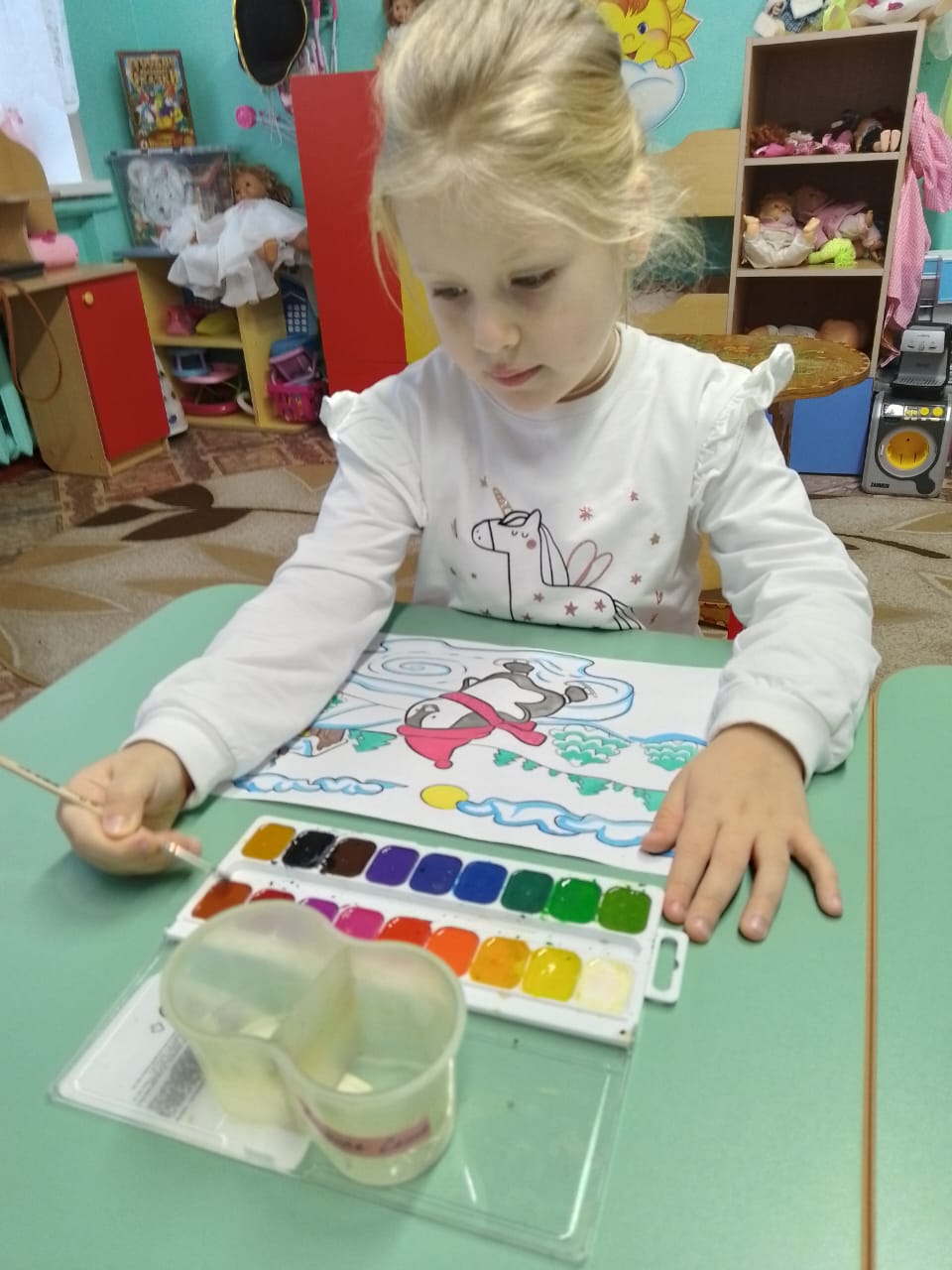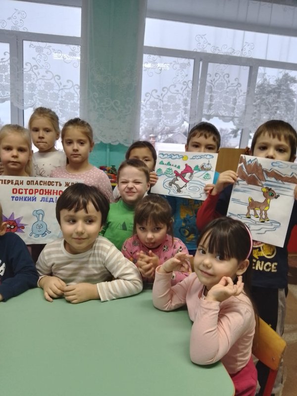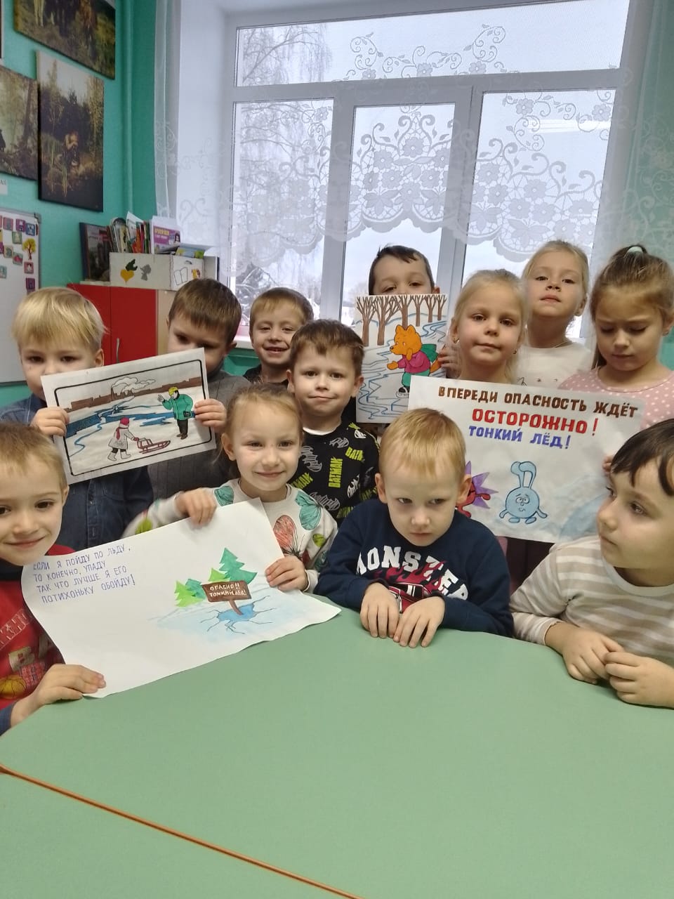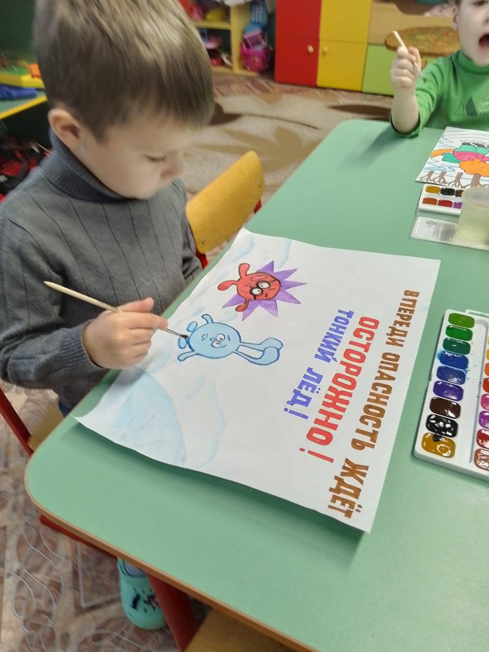 Дети группы «Солнышко» с Викторией Вячеславовной закрепляя знания об опасности тонкого льда, раскрашивали уже знакомых героев.