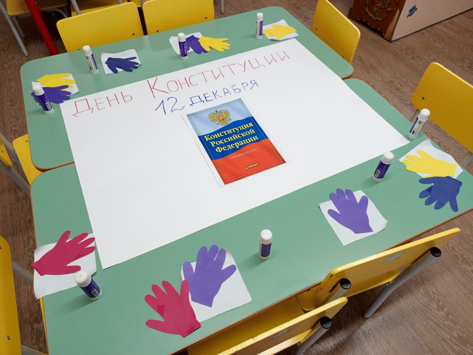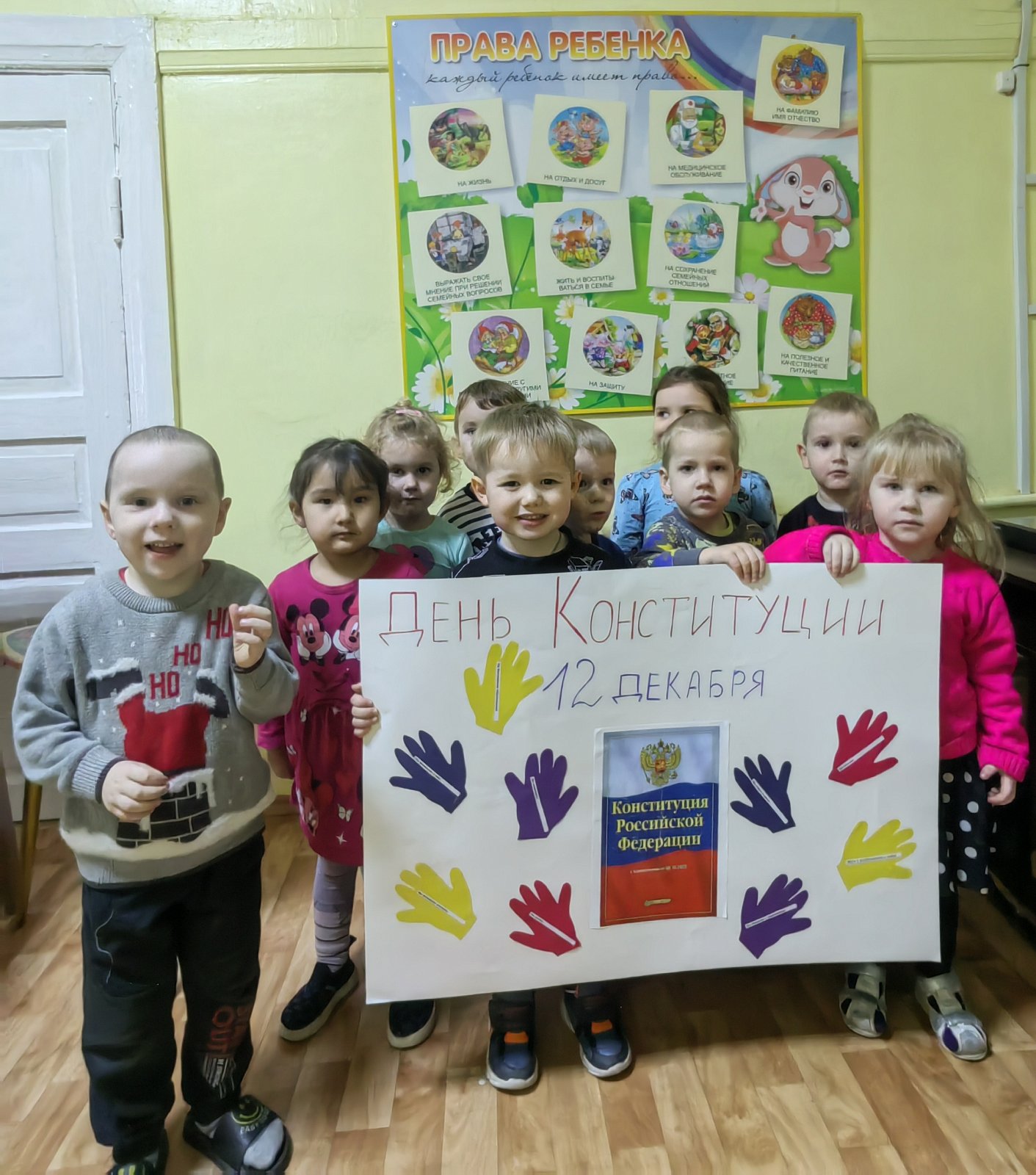 ????12 декабря наша страна отмечает особенный праздник – День Конституции. Уже в дошкольном возрасте мы знакомим детей с основными положениями Конституции, воспитываем любовь, уважение и гордость к Родине, прививаем начальные правовые знания, формируем правовую культуру посредством занятий и игровых мероприятий.
