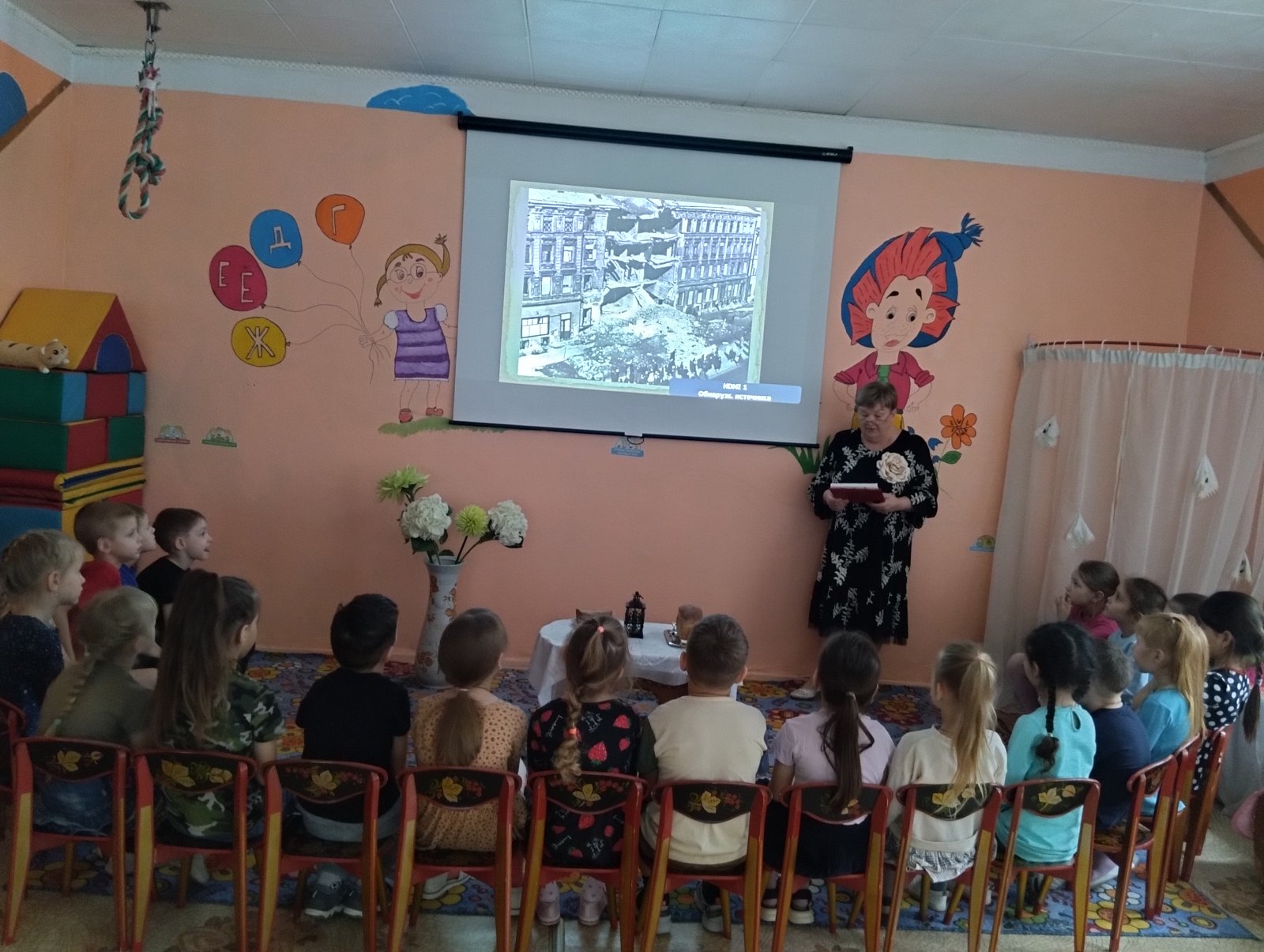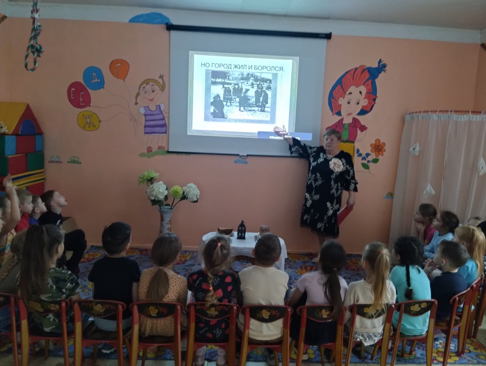 Сегодня, 27 января – памятный день для Ленинграда или как сейчас называется Санкт-Петербург. Елена Алексеевна рассказала детям об этом трудном времени.- « Этот день, с одной стороны, радостный, а с другой стороны, день скорби. Радостный он потому, что 78 лет назад, во время войны с Германией, 27 января 1944 года, город Ленинград был освобожден от фашистской блокады, которая длилась 872 дня. Немцы подошли к городу так близко, что с крыш высоких домов можно было увидеть их позиции.