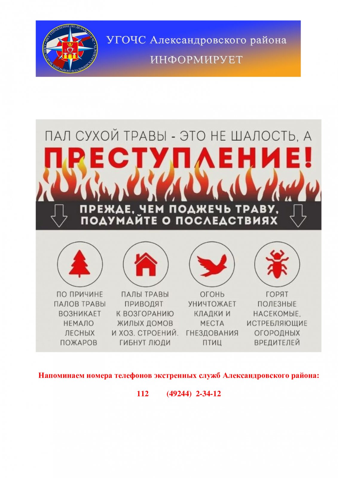 Уважаемые родители будьте внимательны не допускайте поджог травы! Следите за детьми!