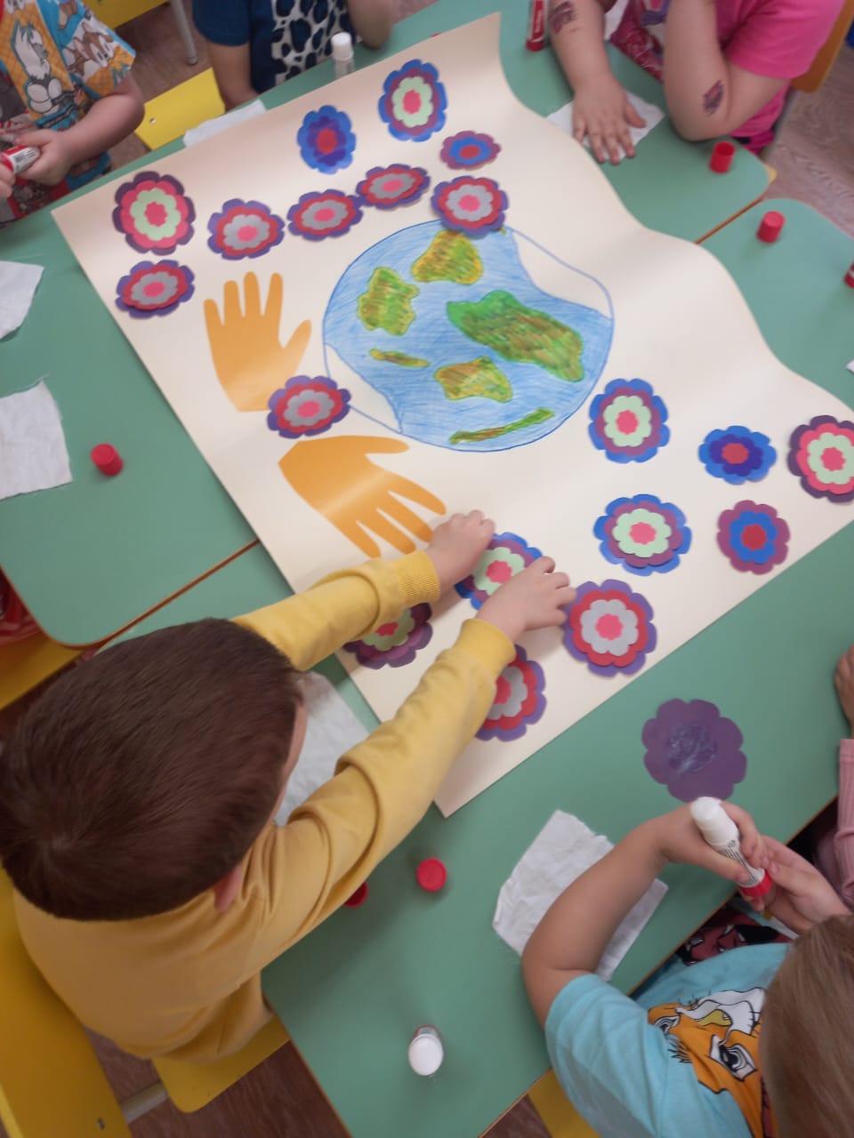 И в завершении, тематического занятия ребята поучаствовали в совместной деятельности по созданию плаката «Украсим Землю цветами».