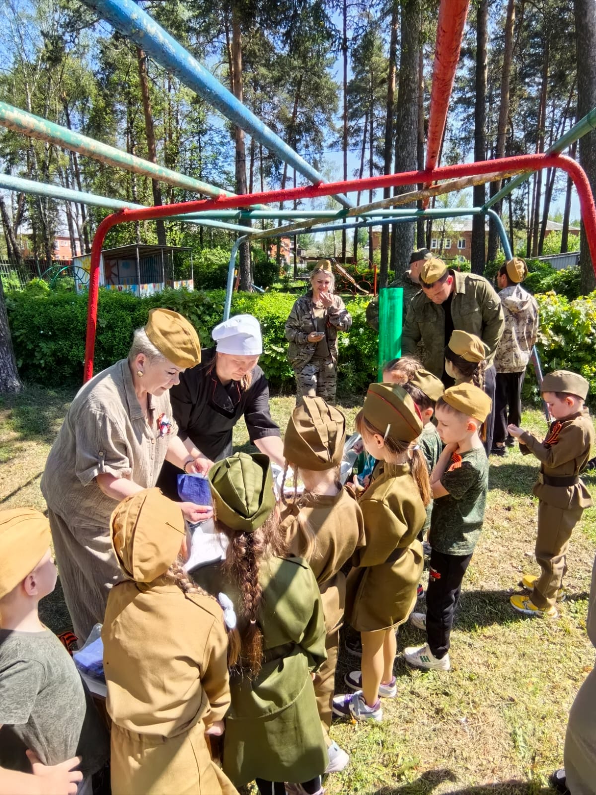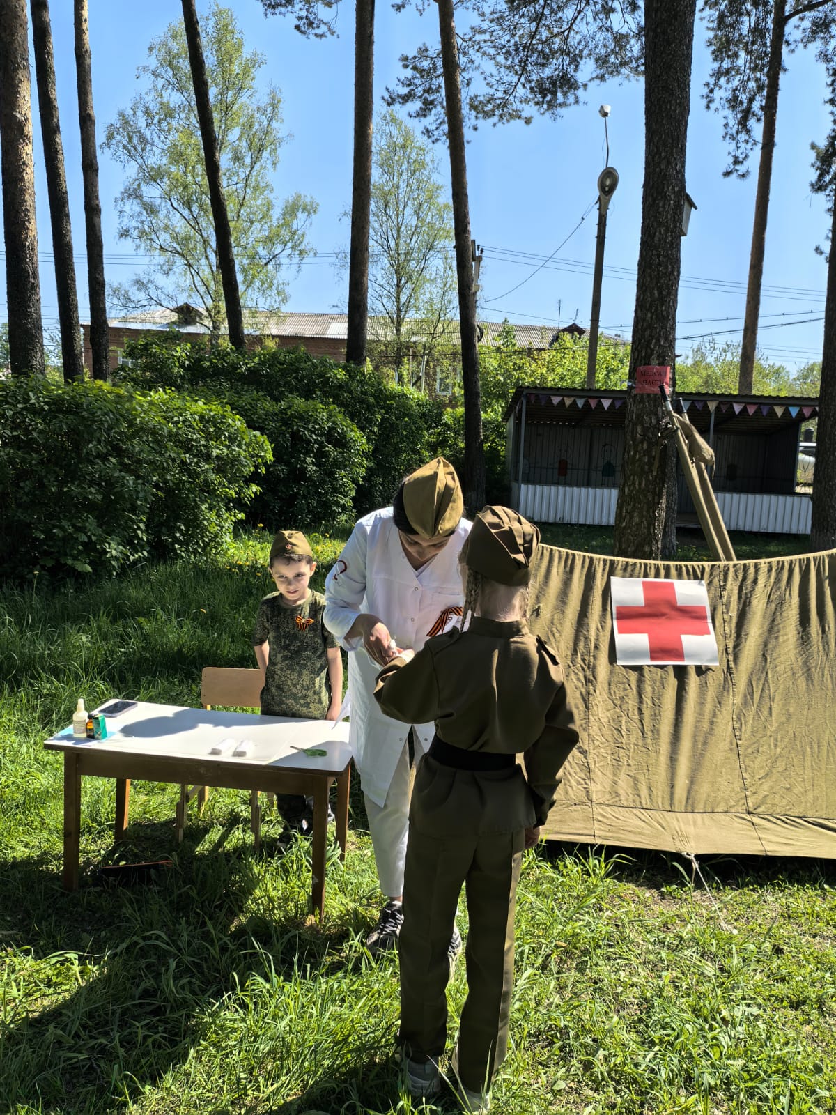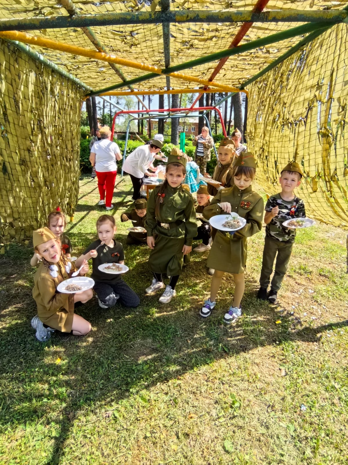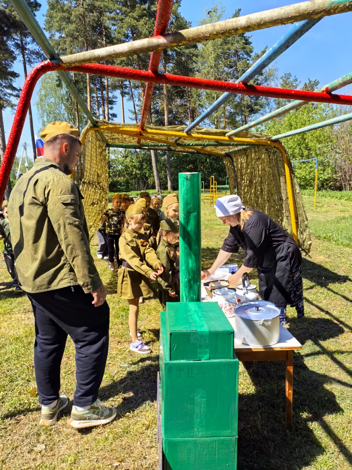 Дети с интересом выполняли задания на станциях, где им предстояло пройти через различные испытания, как во время Великой Отечественной войны. Участники мероприятия совершили марш-бросок, прошли полосу препятствий, минное поле, преодолели станцию " Снайперы" участников развлекала агитбригада, во главе с муз. руководителем Шевелёвой Н.В , далее у детей был мастер-класс по изготовлению фронтового письма , в мед. сан. части, раненным оказали первую помощь , конечный результат " Знамя Победы ", было найдено ! Всех гостей и участников ждала Полевая кухня, с напитками и вкусной кашей.