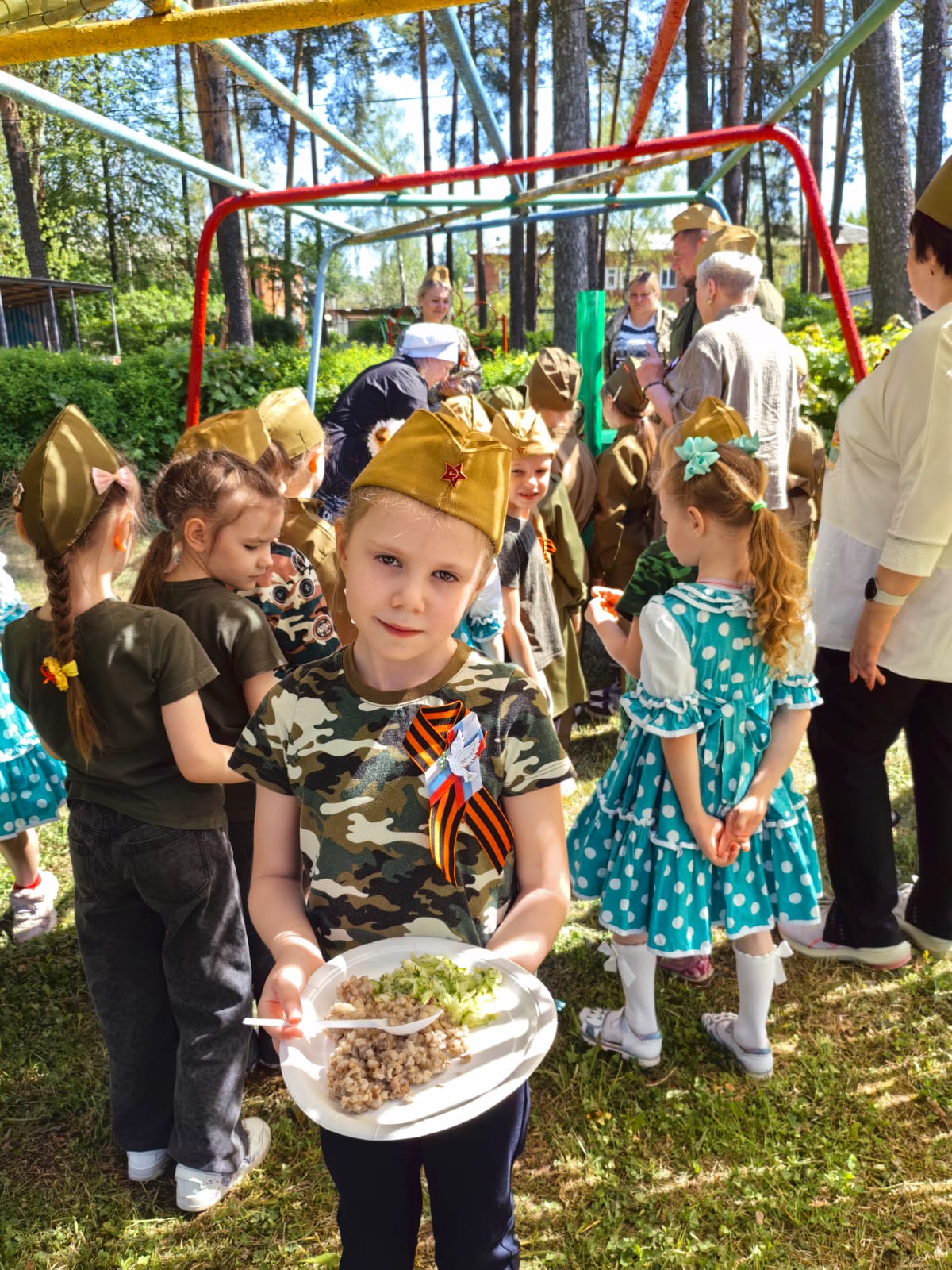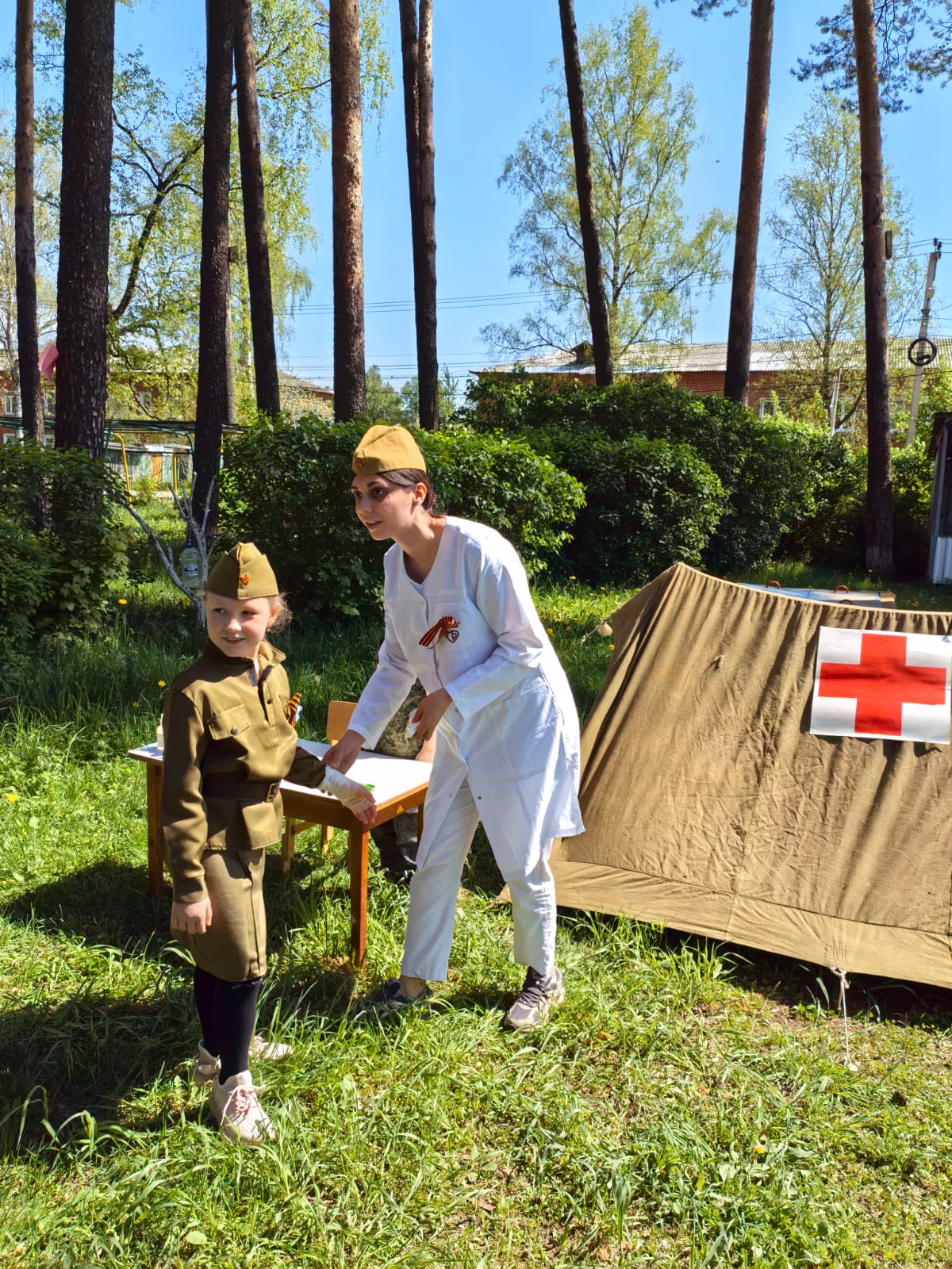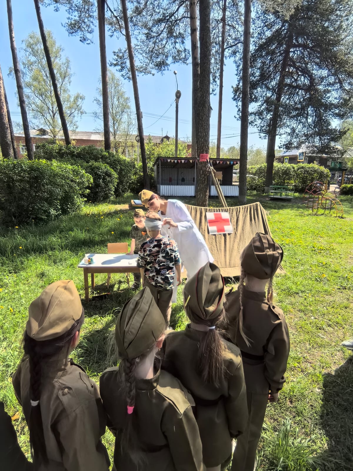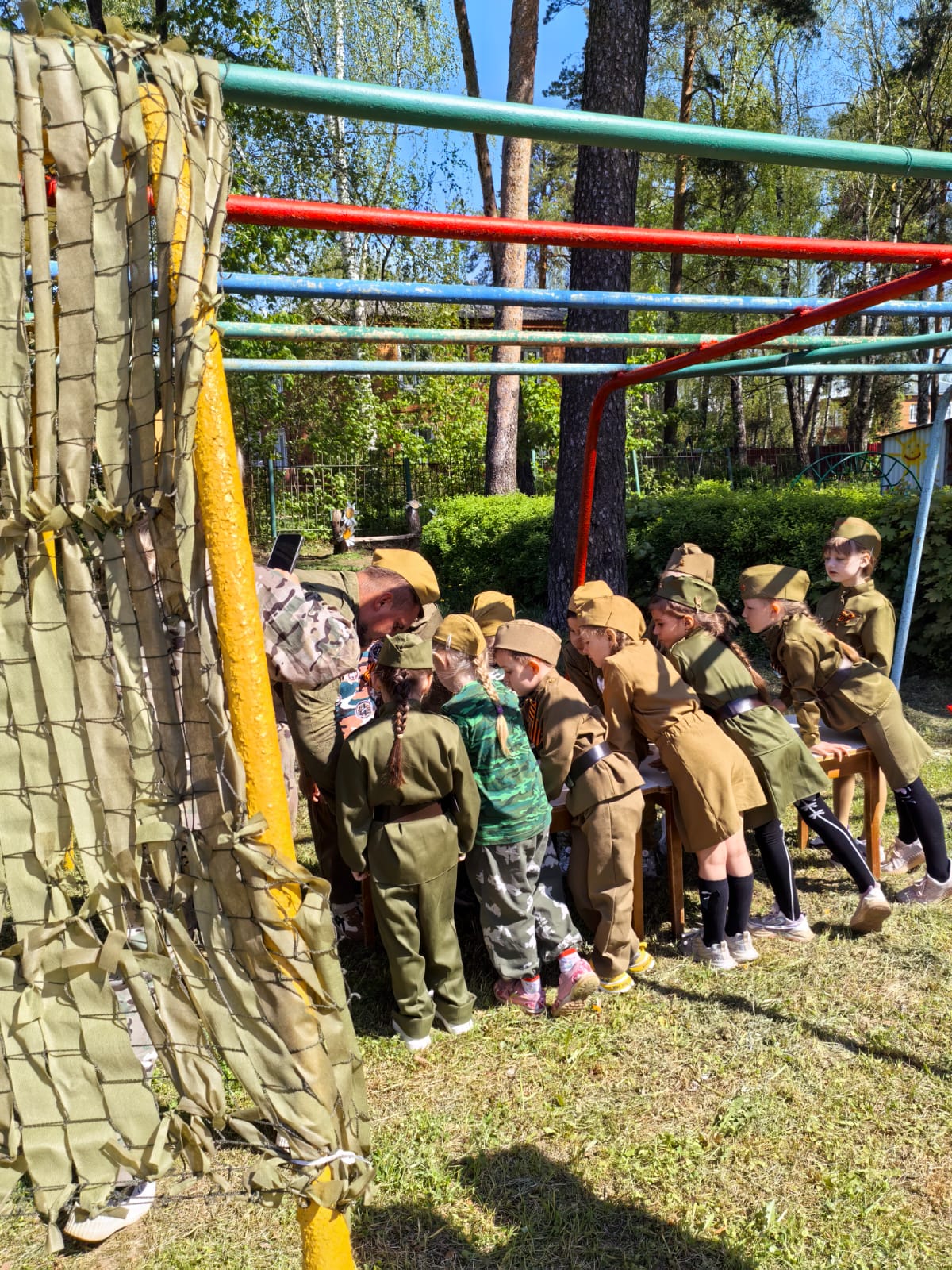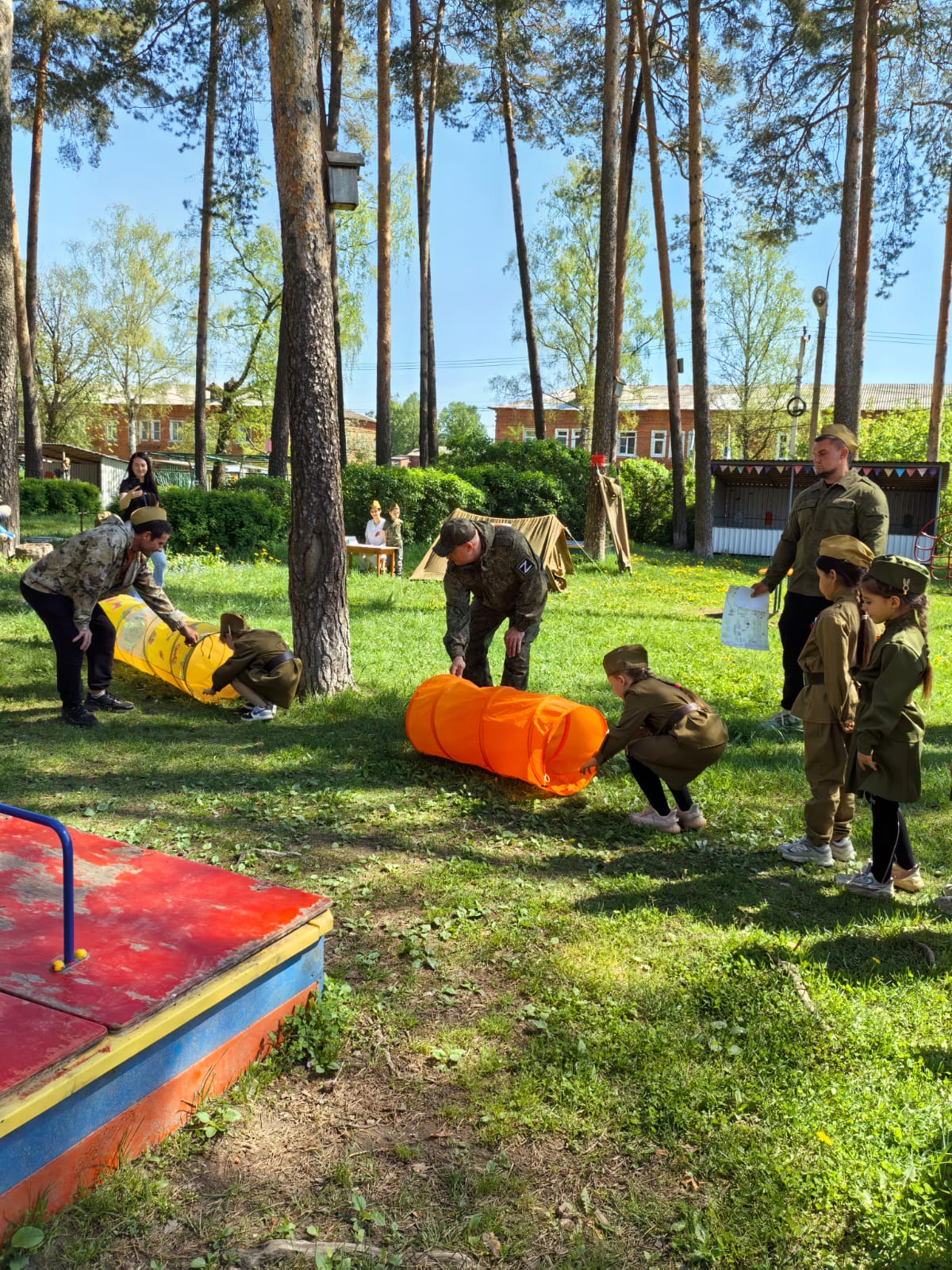 Дети с интересом выполняли задания на станциях, где им предстояло пройти через различные испытания, как во время Великой Отечественной войны. Участники мероприятия совершили марш-бросок, прошли полосу препятствий, минное поле, преодолели станцию " Снайперы" участников развлекала агитбригада, во главе с муз. руководителем Шевелёвой Н.В , далее у детей был мастер-класс по изготовлению фронтового письма , в мед. сан. части, раненным оказали первую помощь , конечный результат " Знамя Победы ", было найдено ! Всех гостей и участников ждала Полевая кухня, с напитками и вкусной кашей.