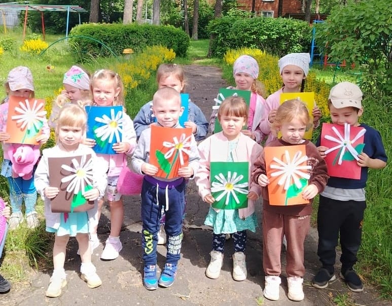Дети совместно с Ольгой Алексеевной сделали такую красоту - ромашку из бумаги.