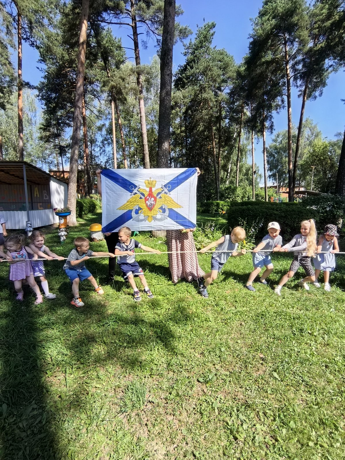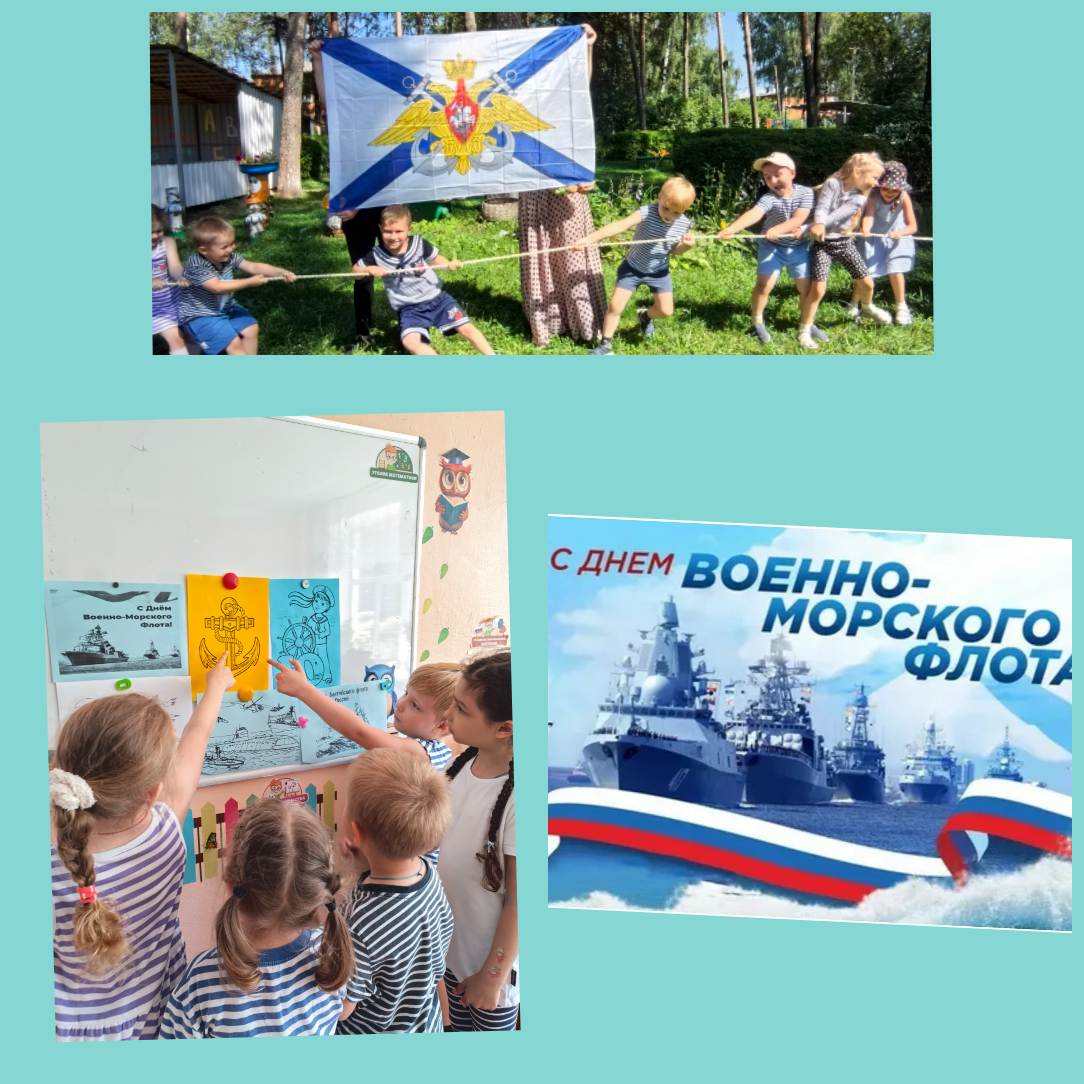 В предверии праздника Дня Военно Морского флота, в нашем детском саду "Василек" прошел праздник. В ходе праздника ,ребята, познакомились с историей возникновения русского флота, узнали о морских профессиях, слушали песни о моряках, а также показали свои спортивные умения в игре «Море волнуется», соревнованиях «Перетяни канат», «Кто быстрее поднимет якорь». Мероприятие прошло в атмосфере радости и веселья, способствуя развитию у детей познавательного интереса, логического мышления и умения работать в команде, вызвало в детях чувства патриотизма, уважения к Армии и любви к Родине.