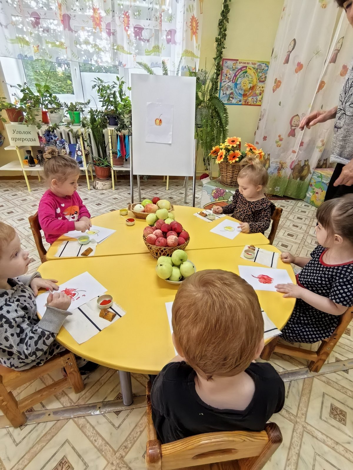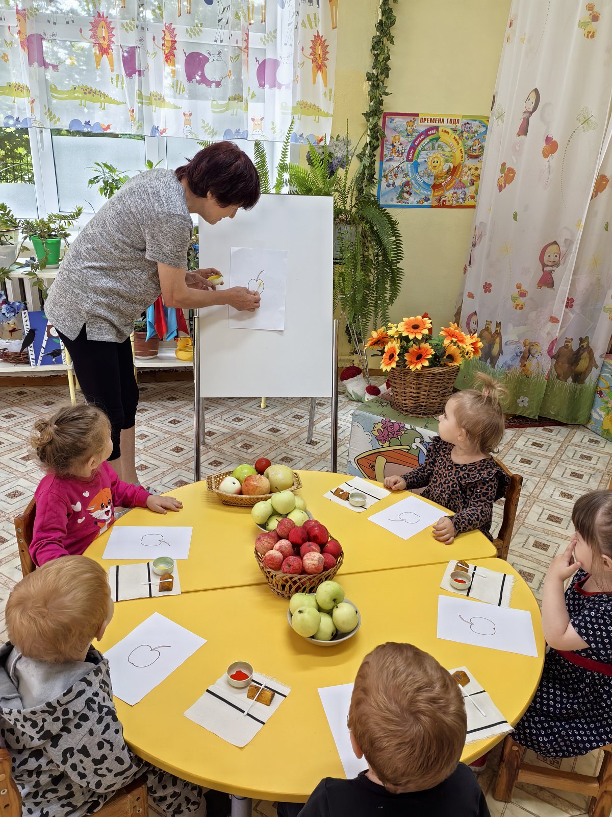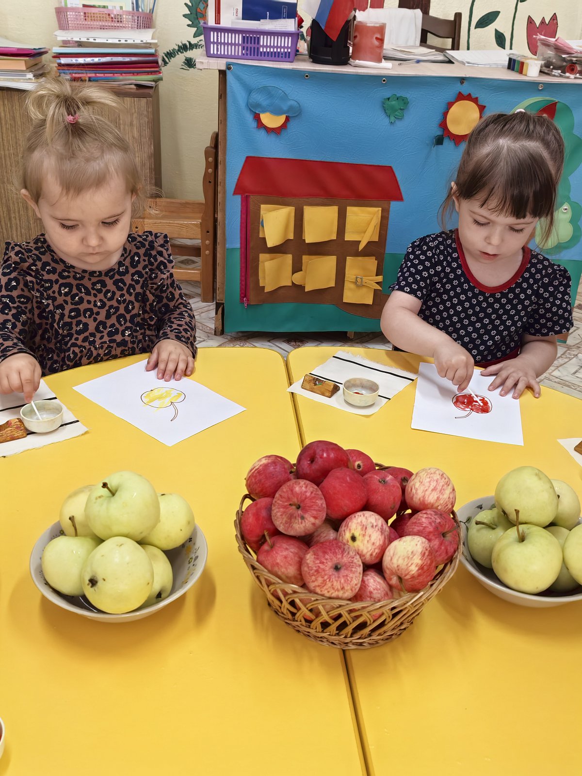 Сегодня дети из группы "Утёнок", рисовали красивые и разноцветные, наливные яблочки. Все старались и проявляли фантазию.