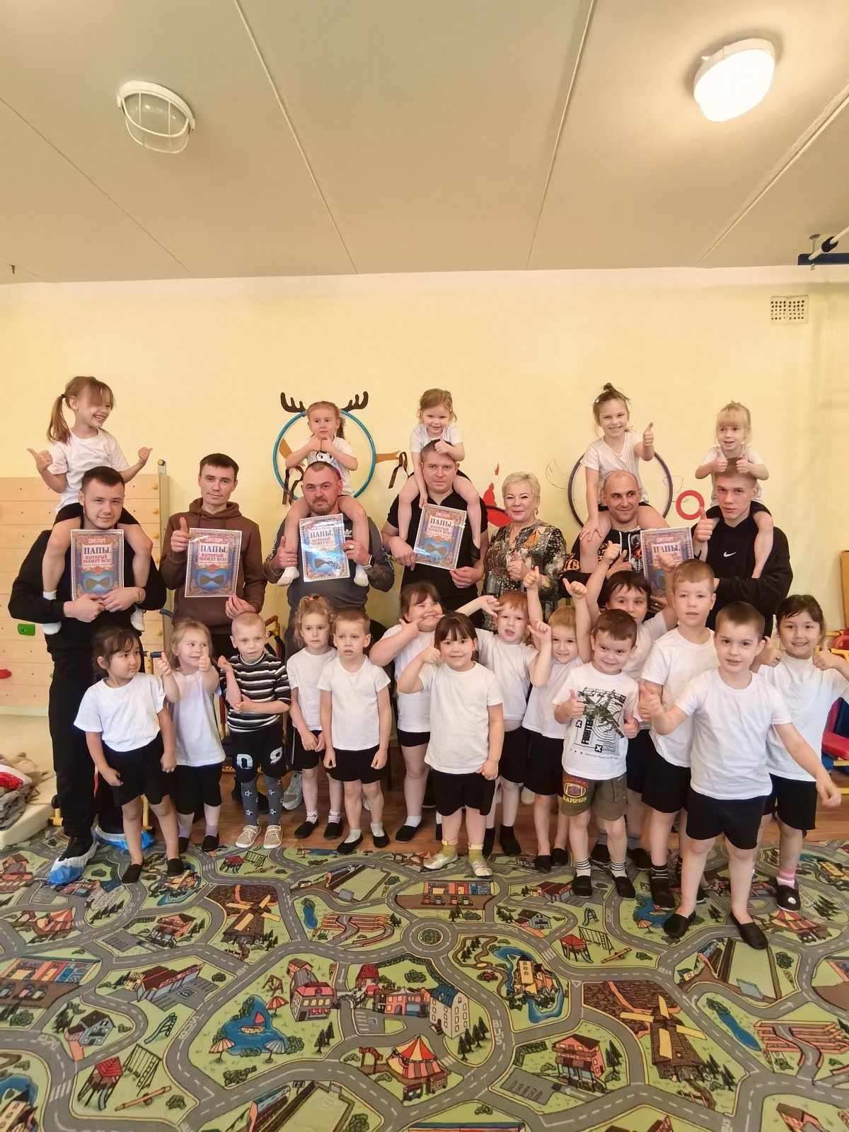 В завершении праздника состоялось торжественное награждение. Все папы получили заслуженные дипломы за участие, а дети - сладкие призы в качестве поощрения.