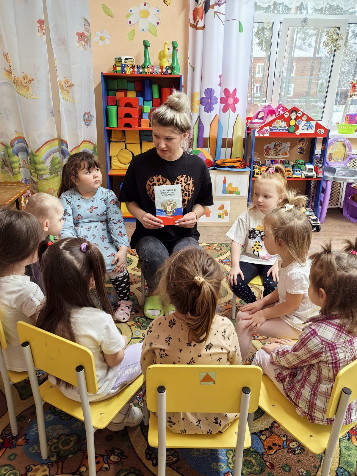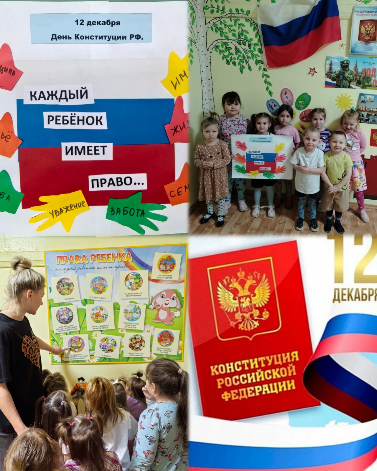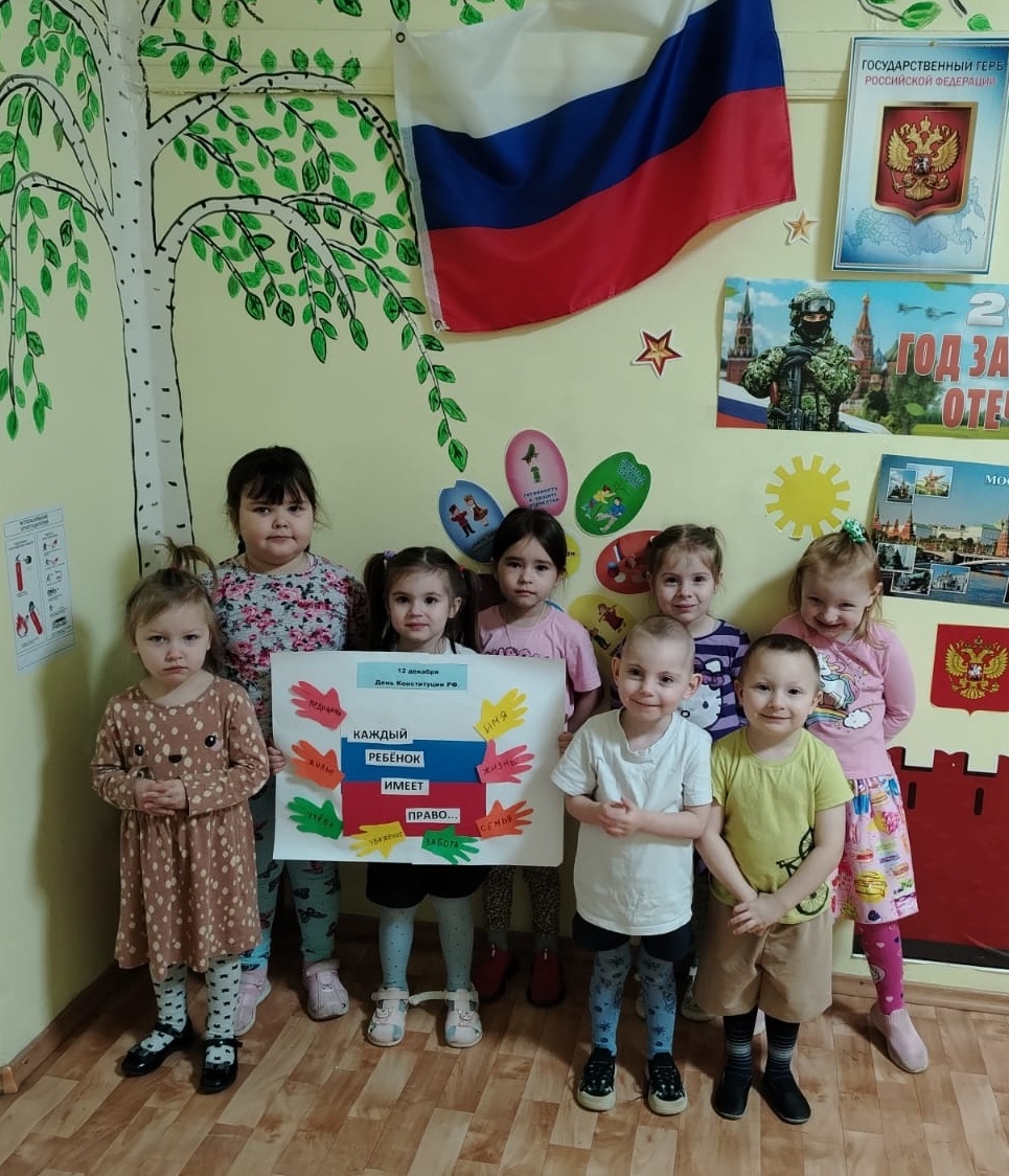 Сегодня в группе «Семицветик» состоялось интересное тематическое занятие, посвящённое Дню Конституции Российской Федерации. Ольга Алексеевна, рассказала детям о значении главного закона нашей страны, объясняющего каждому гражданину его права и обязанности. Ребята познакомились с государственными символами России — флагом , гербом и гимном, почувствовав особую гордость за свою Родину.