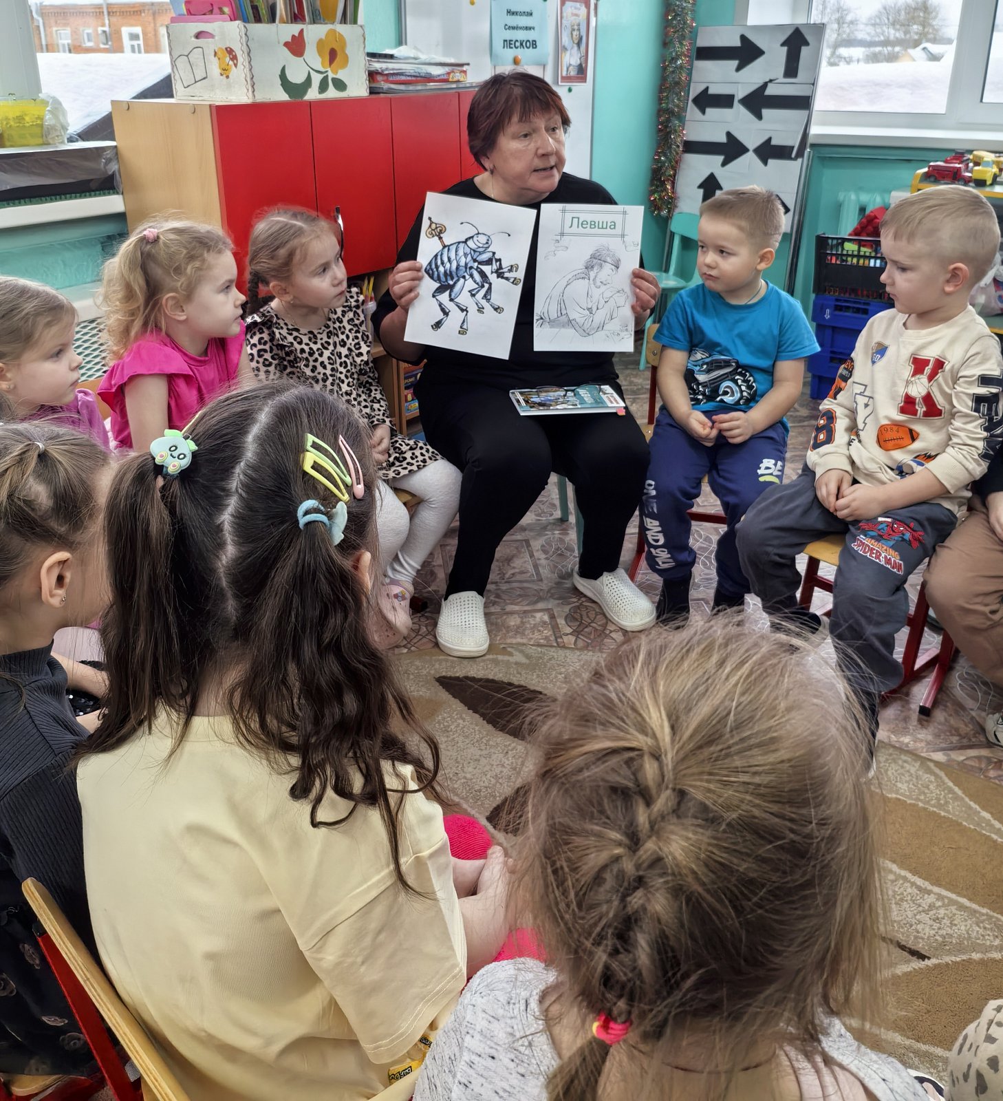 Во время занятия дети рассматривали иллюстрации, изображающие знаменитую Тлявинскую блоху, выполненную русским мастером. Их восхищению не было границ — они поражались искусству русских умельцев и таланту самого Лескова, сумевшего создать столь яркий образ.