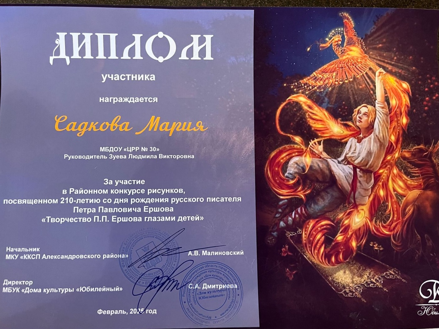 Владимир Михайлович с дачкой Машей получили диплом за участие в конкурсе..